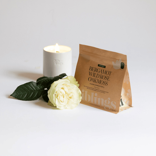 Each refill includes 10 oz of clean coconut-soy wax, free of paraffin and infused with our feel-good fragrances. Simply melt, pour into your vessel, and light. A ritual to return to, with 60 hours of cozy burn time.